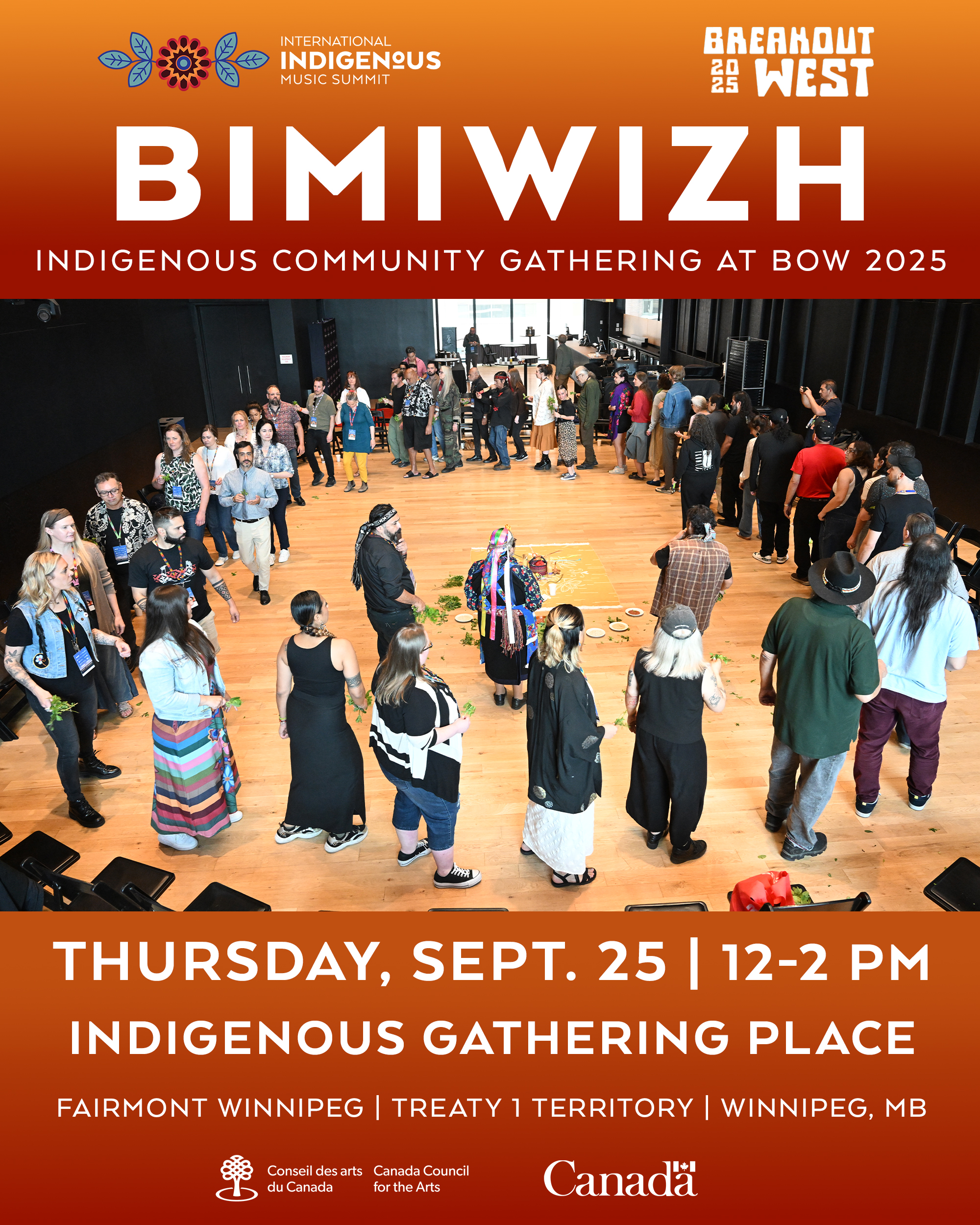 IIMS is proud to partner with BreakOut West 2025 to host a special Indigenous Community Gathering in the heart of Treaty 1 Territory. Join us at the Indigenous Gathering Place to connect, share stories, and celebrate local artists, organizers, and community members shaping the future of Indigenous music.